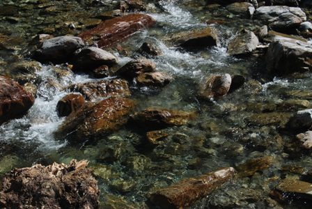 Bei mir ja jetzt auch. (Wasser umspült Steine)