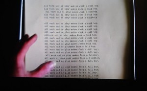 Und was ist dann am nächsten Morgen passiert? Die Schreibmaschine konnte nur den einen Satz schreiben?Eingeschneit? „Honey, I’m home!“????